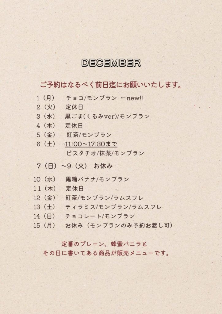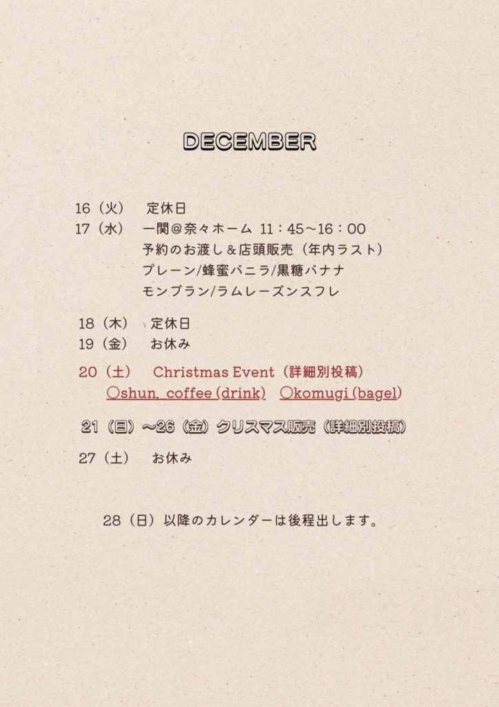 2025年12月のスケジュール